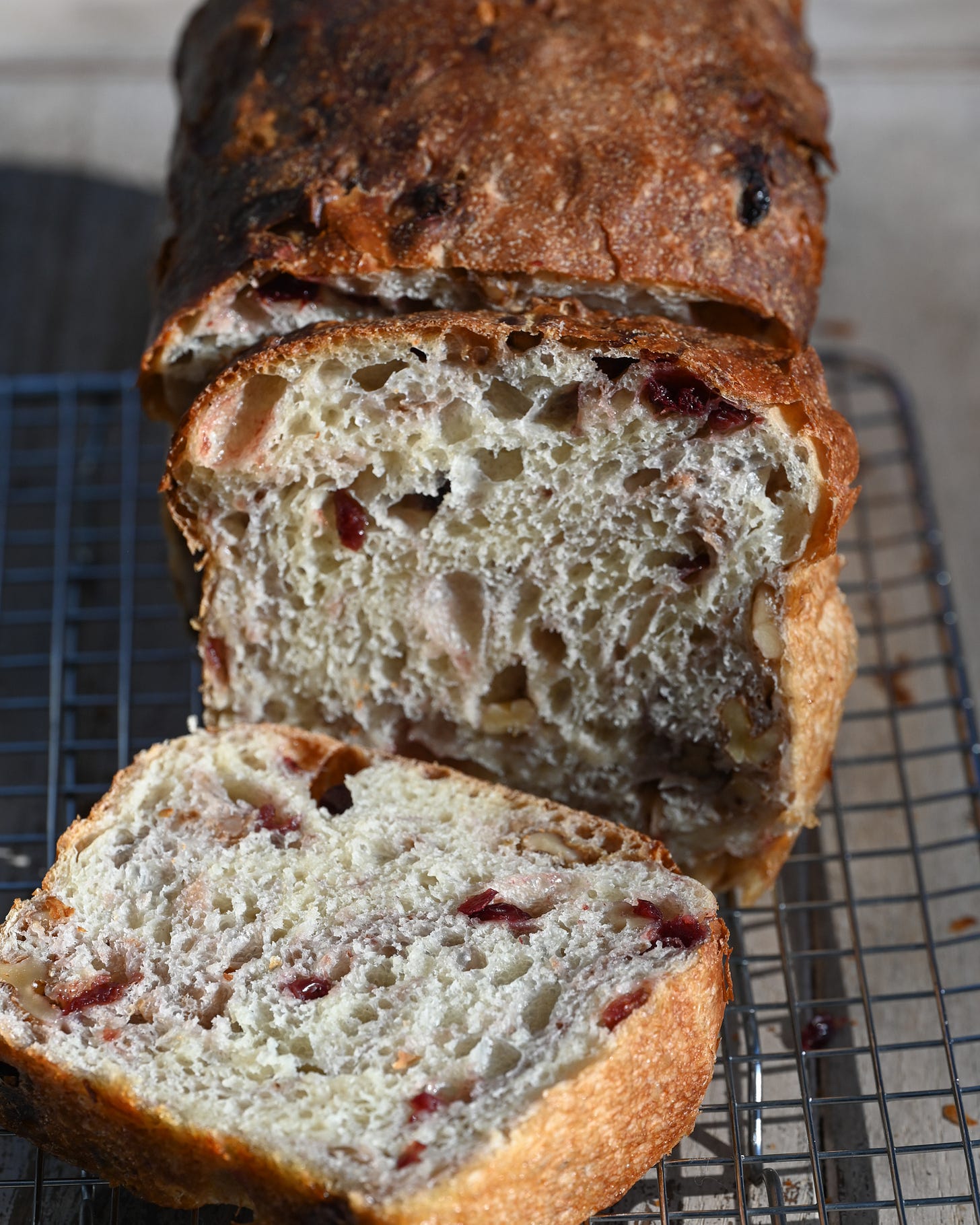 Cranberry Nut Loaf: No Knead, Overnight Rise